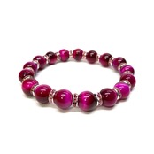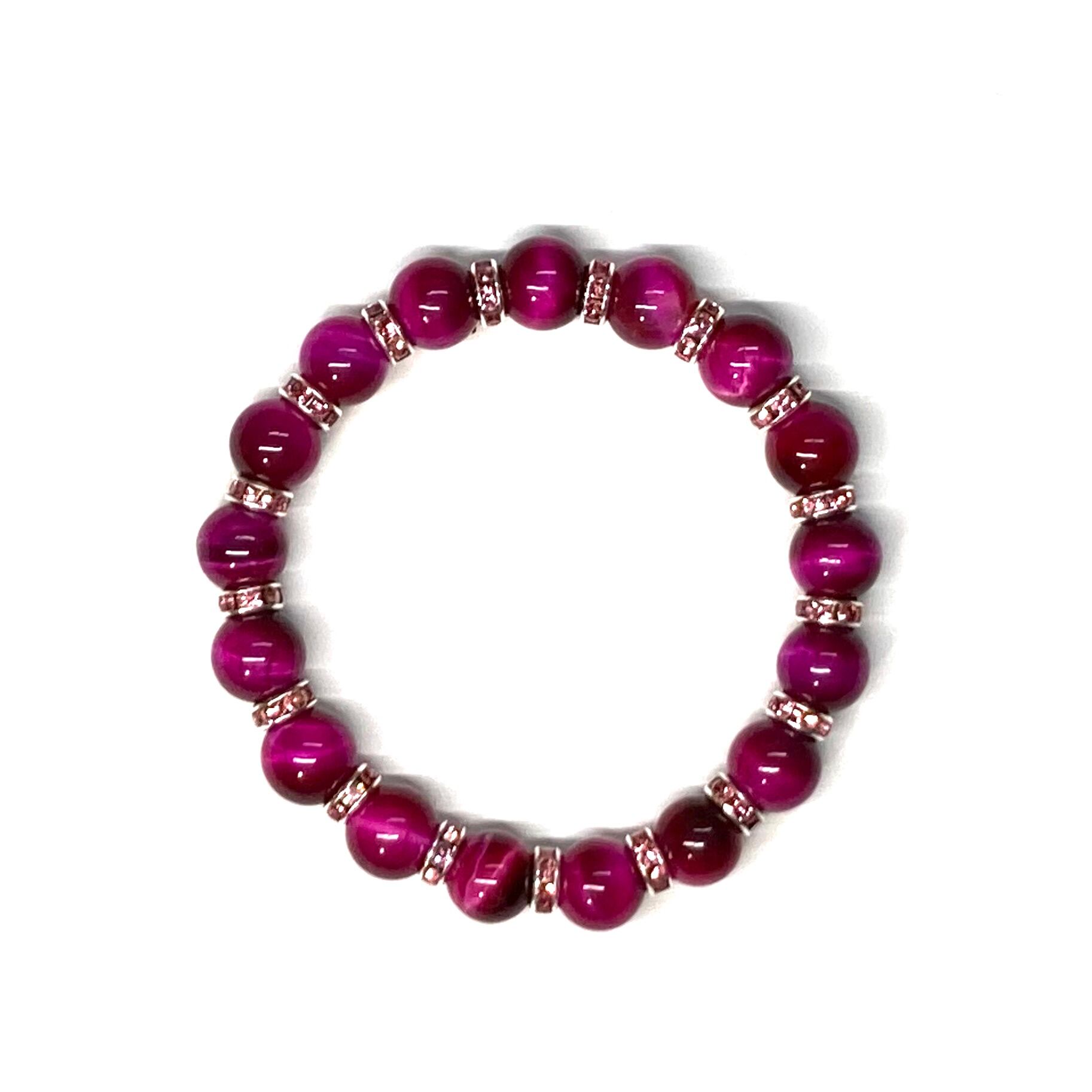 こちらは、ピンクタイガーアイの8mm玉を使用したパワーストーンブレスレットです。石との間にはロンデルを挟み高級感を演出しております。シンプルなデザインは、シーン問わずどんなコーディネートとも合わせ易いブレスレットです。サイズは内周約18cm (手首周りを測り少し余裕をもってお買い求めくださいませ。)です。当社の中でも一番人気の実績があるデザインとなっております。気になる方はお早めにどうぞ。