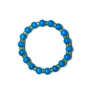 こちらは、ターコイズの8mm玉を使用したパワーストーンブレスレットです。石との間にはロンデルを挟み高級感を演出しております。シンプルなデザインは、シーン問わずどんなコーディネートとも合わせ易いブレスレットです。サイズは内周約22cm (手首周りを測り少し余裕をもってお買い求めくださいませ。)です。当社の中でも一番人気の実績があるデザインとなっております。気になる方はお早めにどうぞ。