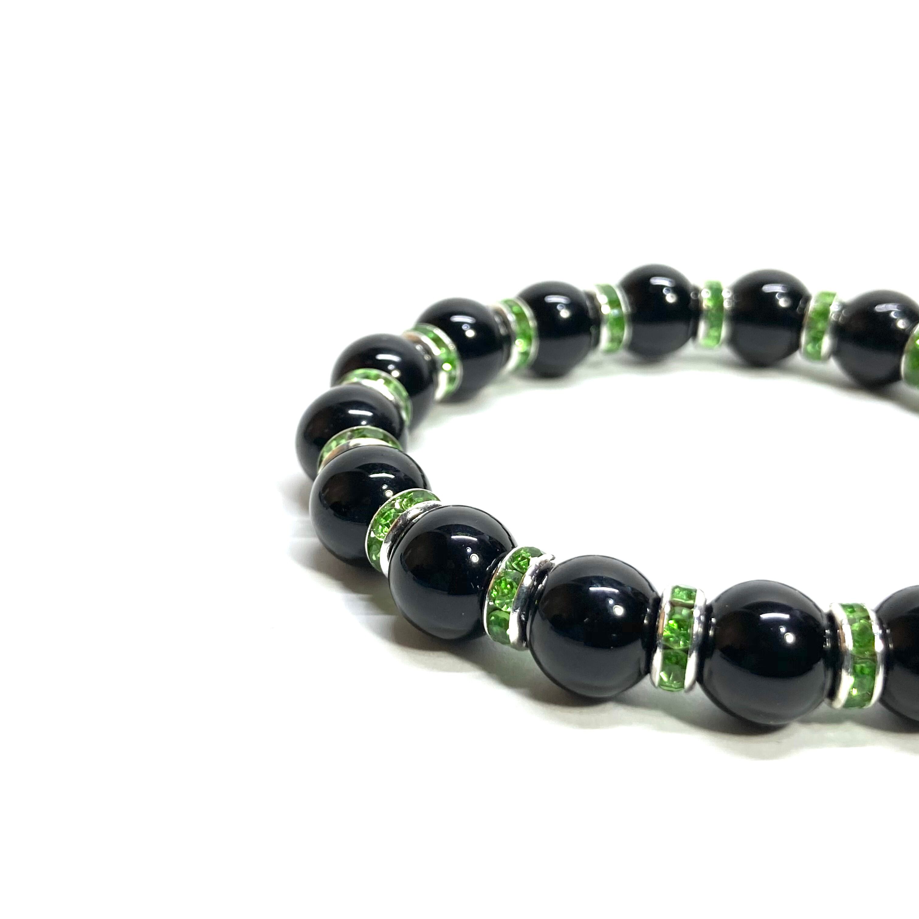 こちらは、モリオンの8mm玉を使用したパワーストーンブレスレットです。石との間にはロンデルを挟み高級感を演出しております。シンプルなデザインは、シーン問わずどんなコーディネートとも合わせ易いブレスレットです。サイズは内周約18cm (手首周りを測り少し余裕をもってお買い求めくださいませ。)です。当社の中でも一番人気の実績があるデザインとなっております。気になる方はお早めにどうぞ。