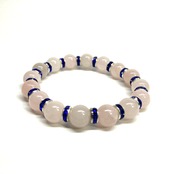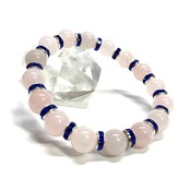こちらは、ローズクォーツの8mm玉を使用したパワーストーンブレスレットです。石との間にはロンデルを挟み高級感を演出しております。シンプルなデザインは、シーン問わずどんなコーディネートとも合わせ易いブレスレットです。サイズは内周約15cm (手首周りを測り少し余裕をもってお買い求めくださいませ。)です。当社の中でも一番人気の実績があるデザインとなっております。気になる方はお早めにどうぞ。