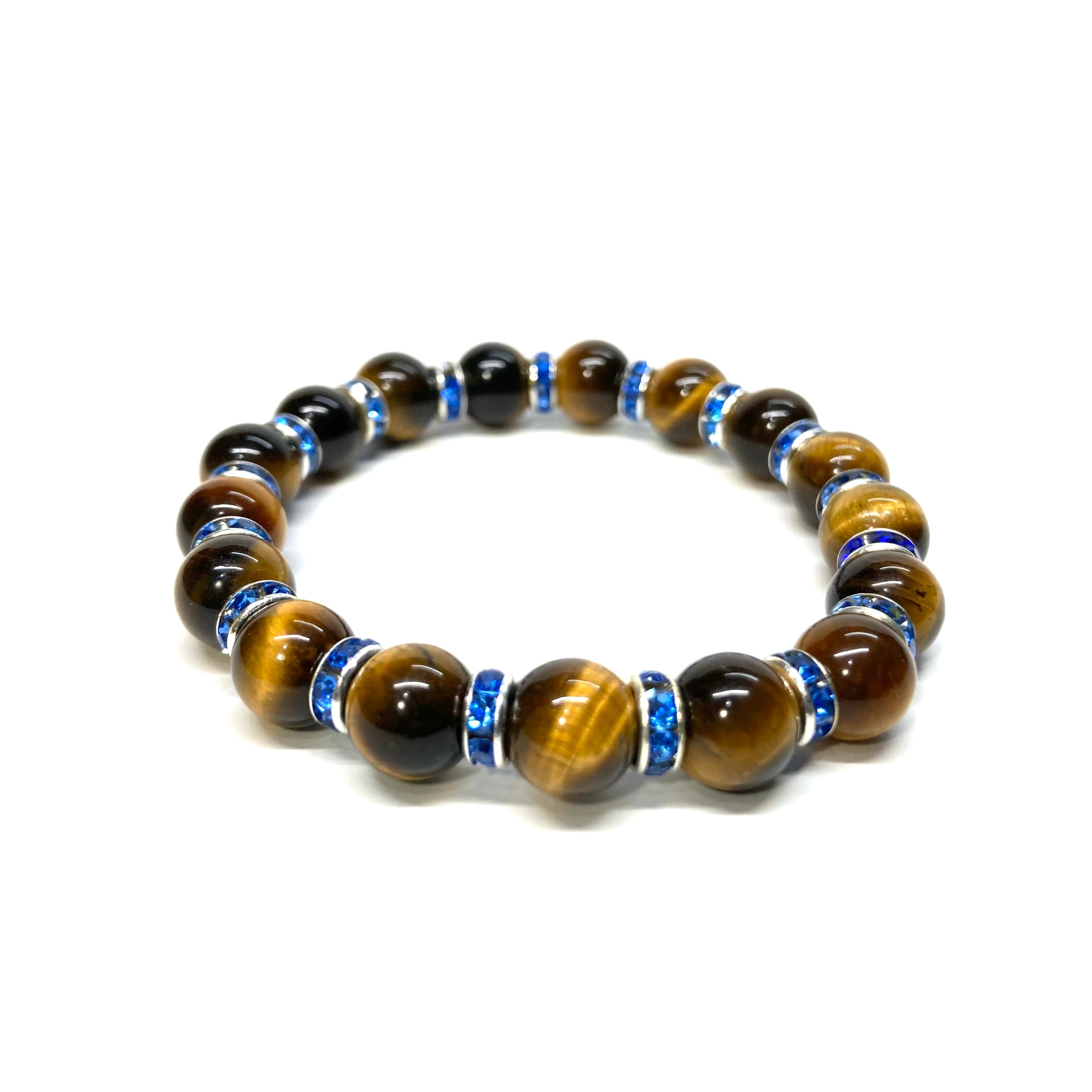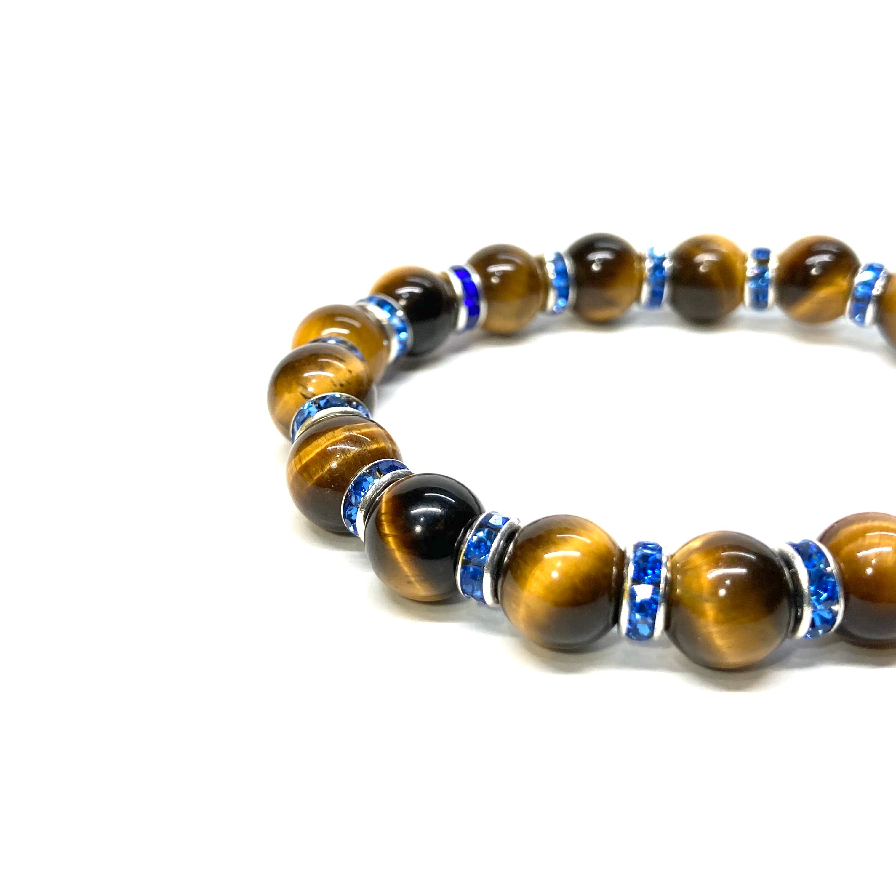 こちらは、タイガーアイの8mm玉を使用したパワーストーンブレスレットです。石との間にはロンデルを挟み高級感を演出しております。シンプルなデザインは、シーン問わずどんなコーディネートとも合わせ易いブレスレットです。サイズは内周約22cm (手首周りを測り少し余裕をもってお買い求めくださいませ。)です。当社の中でも一番人気の実績があるデザインとなっております。気になる方はお早めにどうぞ。