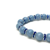 こちらは、エンジェライトの8mm玉を使用したパワーストーンブレスレットです。石との間にはロンデルを挟み高級感を演出しております。シンプルなデザインは、シーン問わずどんなコーディネートとも合わせ易いブレスレットです。サイズは内周約20cm (手首周りを測り少し余裕をもってお買い求めくださいませ。)です。当社の中でも一番人気の実績があるデザインとなっております。気になる方はお早めにどうぞ。