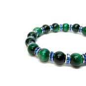 こちらは、グリーンタイガーアイの8mm玉を使用したパワーストーンブレスレットです。石との間にはロンデルを挟み高級感を演出しております。シンプルなデザインは、シーン問わずどんなコーディネートとも合わせ易いブレスレットです。サイズは内周約16cm (手首周りを測り少し余裕をもってお買い求めくださいませ。)です。当社の中でも一番人気の実績があるデザインとなっております。気になる方はお早めにどうぞ。