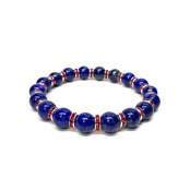 こちらは、ラピスラズリの8mm玉を使用したパワーストーンブレスレットです。石との間にはロンデルを挟み高級感を演出しております。シンプルなデザインは、シーン問わずどんなコーディネートとも合わせ易いブレスレットです。サイズは内周約22cm (手首周りを測り少し余裕をもってお買い求めくださいませ。)です。当社の中でも一番人気の実績があるデザインとなっております。気になる方はお早めにどうぞ。