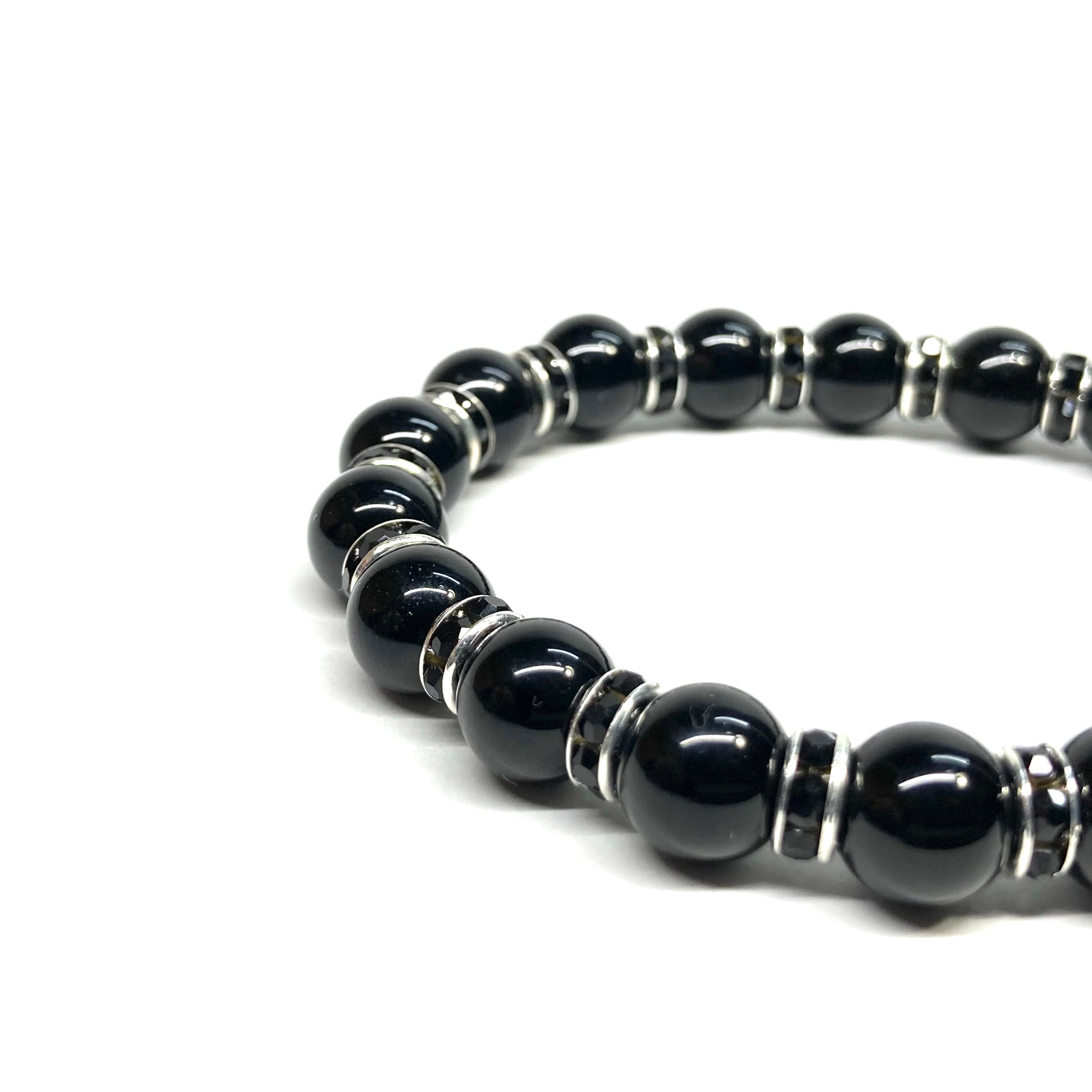 こちらは、モリオンの8mm玉を使用したパワーストーンブレスレットです。石との間にはロンデルを挟み高級感を演出しております。シンプルなデザインは、シーン問わずどんなコーディネートとも合わせ易いブレスレットです。サイズは内周約18cm (手首周りを測り少し余裕をもってお買い求めくださいませ。)です。当社の中でも一番人気の実績があるデザインとなっております。気になる方はお早めにどうぞ。