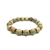 こちらは、インプレッションストーンの8mm玉を使用したパワーストーンブレスレットです。石との間にはロンデルを挟み高級感を演出しております。シンプルなデザインは、シーン問わずどんなコーディネートとも合わせ易いブレスレットです。サイズは内周約16cm (手首周りを測り少し余裕をもってお買い求めくださいませ。)です。当社の中でも一番人気の実績があるデザインとなっております。気になる方はお早めにどうぞ。