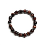 こちらは、レッドタイガーアイの8mm玉を使用したパワーストーンブレスレットです。石との間にはロンデルを挟み高級感を演出しております。シンプルなデザインは、シーン問わずどんなコーディネートとも合わせ易いブレスレットです。サイズは内周約16cm (手首周りを測り少し余裕をもってお買い求めくださいませ。)です。当社の中でも一番人気の実績があるデザインとなっております。気になる方はお早めにどうぞ。