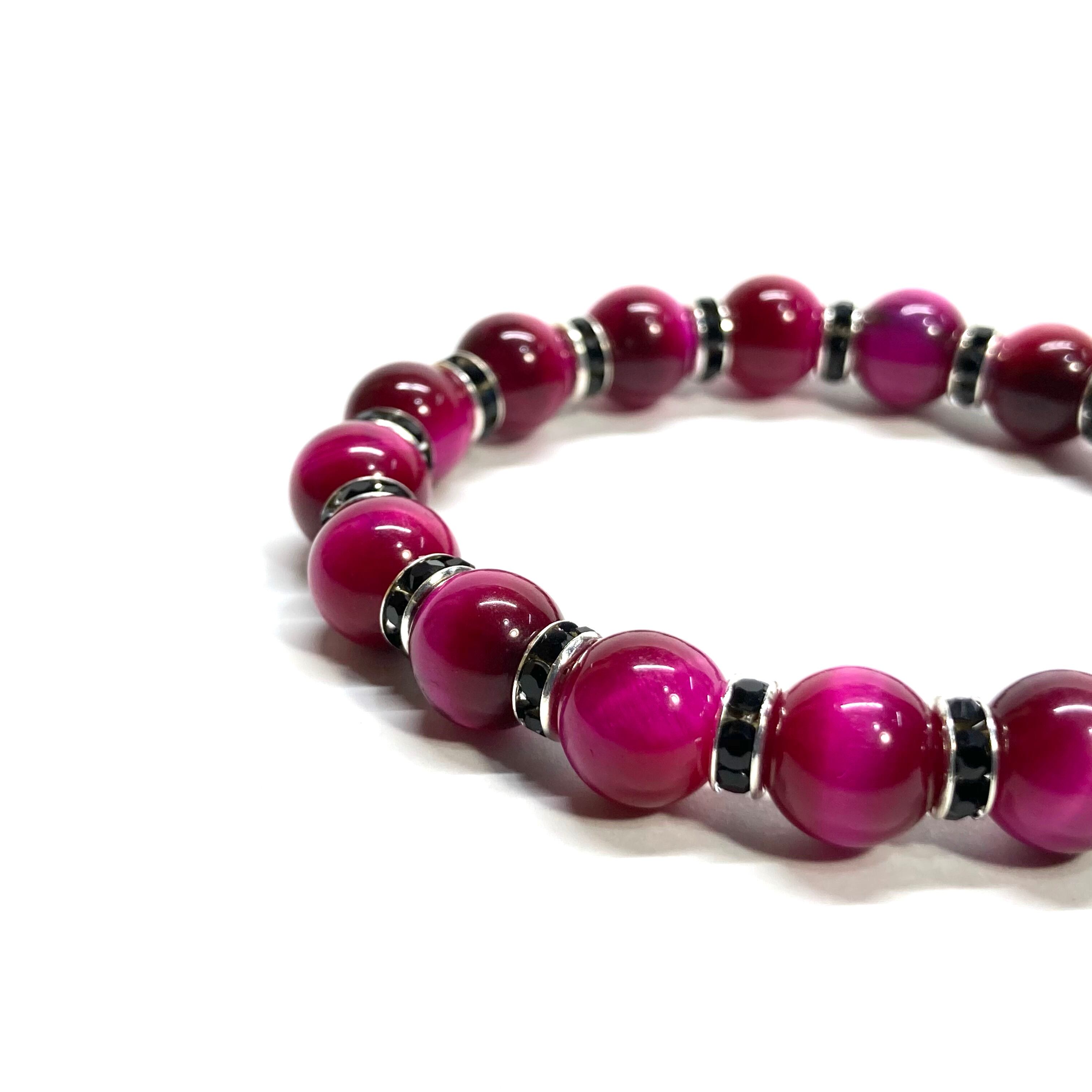 ピンクタイガーアイ パワーストーン ブレスレット 8mm 内周15cm BK