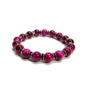 こちらは、ピンクタイガーアイの8mm玉を使用したパワーストーンブレスレットです。石との間にはロンデルを挟み高級感を演出しております。シンプルなデザインは、シーン問わずどんなコーディネートとも合わせ易いブレスレットです。サイズは内周約15cm (手首周りを測り少し余裕をもってお買い求めくださいませ。)です。当社の中でも一番人気の実績があるデザインとなっております。気になる方はお早めにどうぞ。