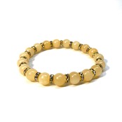 こちらは、アラゴナイトの8mm玉を使用したパワーストーンブレスレットです。石との間にはロンデルを挟み高級感を演出しております。シンプルなデザインは、シーン問わずどんなコーディネートとも合わせ易いブレスレットです。サイズは内周約21cm (手首周りを測り少し余裕をもってお買い求めくださいませ。)です。当社の中でも一番人気の実績があるデザインとなっております。気になる方はお早めにどうぞ。