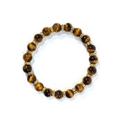 こちらは、タイガーアイの8mm玉を使用したパワーストーンブレスレットです。石との間にはロンデルを挟み高級感を演出しております。シンプルなデザインは、シーン問わずどんなコーディネートとも合わせ易いブレスレットです。サイズは内周約19cm (手首周りを測り少し余裕をもってお買い求めくださいませ。)です。当社の中でも一番人気の実績があるデザインとなっております。気になる方はお早めにどうぞ。