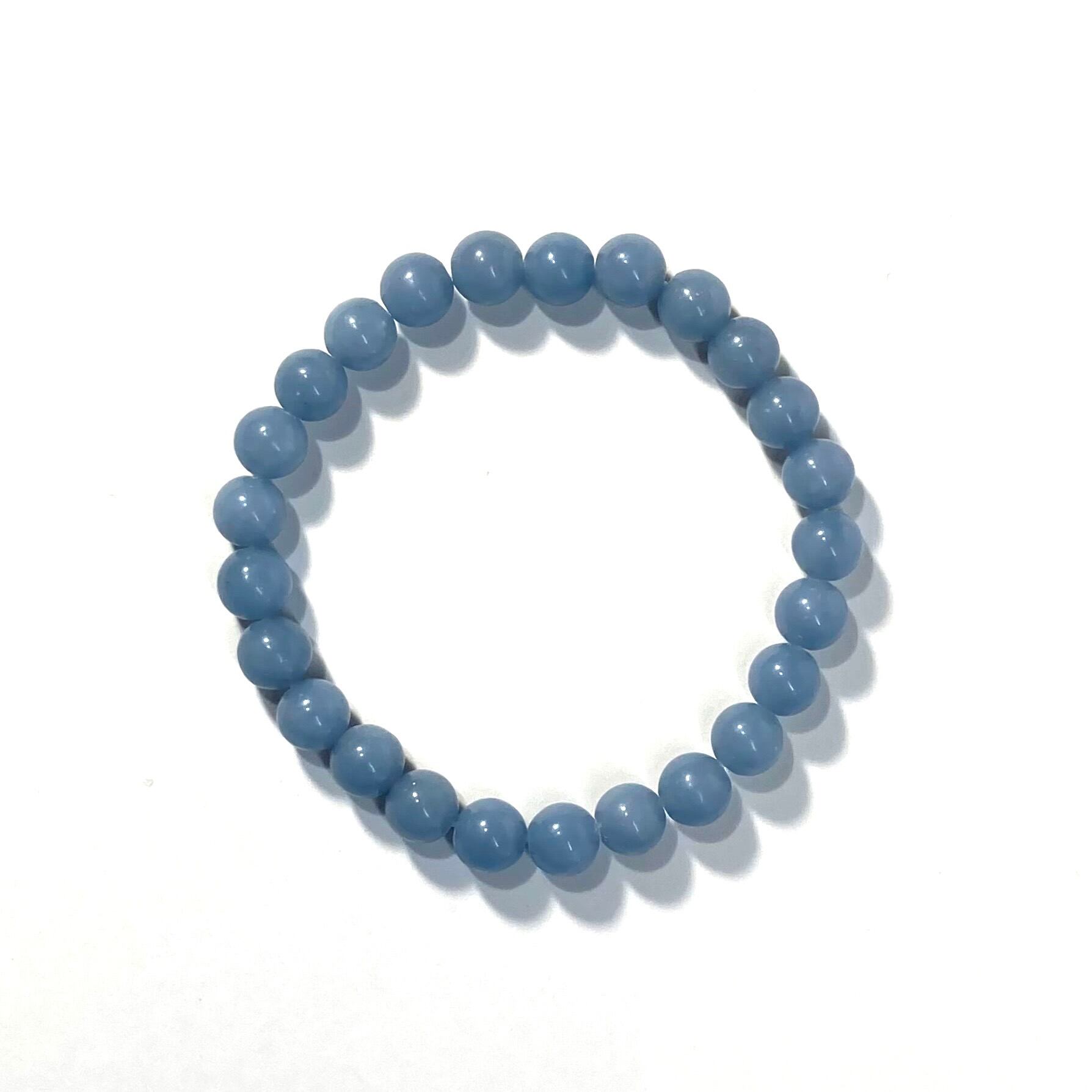 こちらは、エンジェライトの8mm玉を使用したパワーストーンブレスレットです。シンプルなデザインは、シーン問わずどんなコーディネートとも合わせ易いブレスレットです。内周 約19cmです。気になる方はお早めにどうぞ。