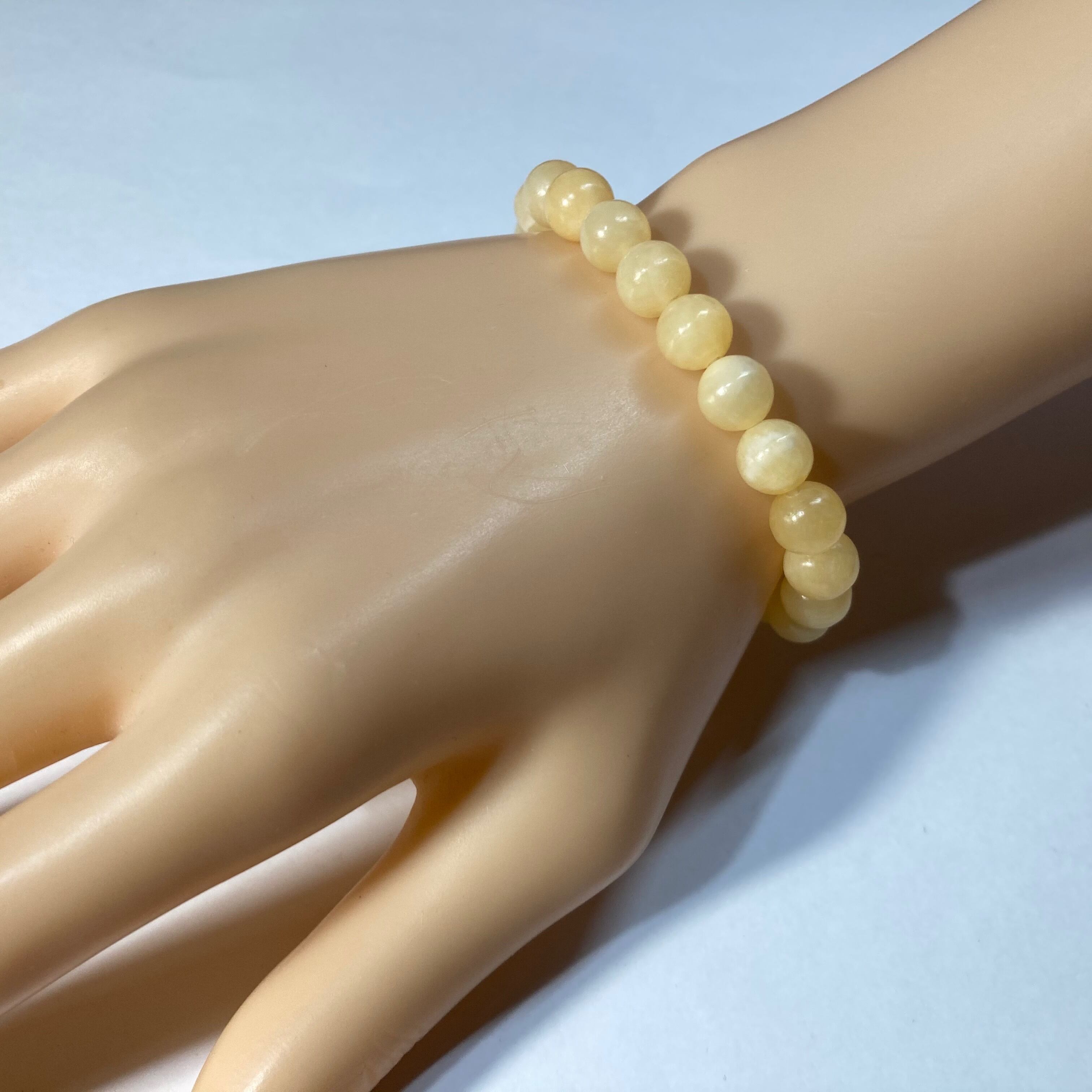 こちらは、アラゴナイトの8mm玉を使用したパワーストーンブレスレットです。シンプルなデザインは、シーン問わずどんなコーディネートとも合わせ易いブレスレットです。内周 約19cmです。気になる方はお早めにどうぞ。