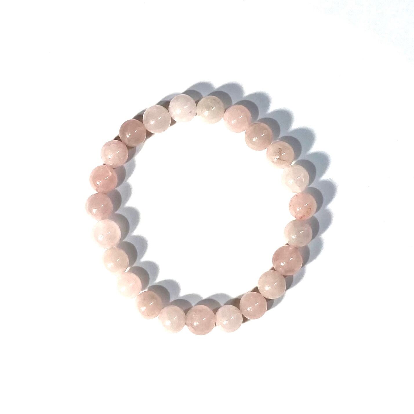 こちらは、ローズクォーツの8mm玉を使用したパワーストーンブレスレットです。シンプルなデザインは、シーン問わずどんなコーディネートとも合わせ易いブレスレットです。内周 約19cmです。気になる方はお早めにどうぞ。