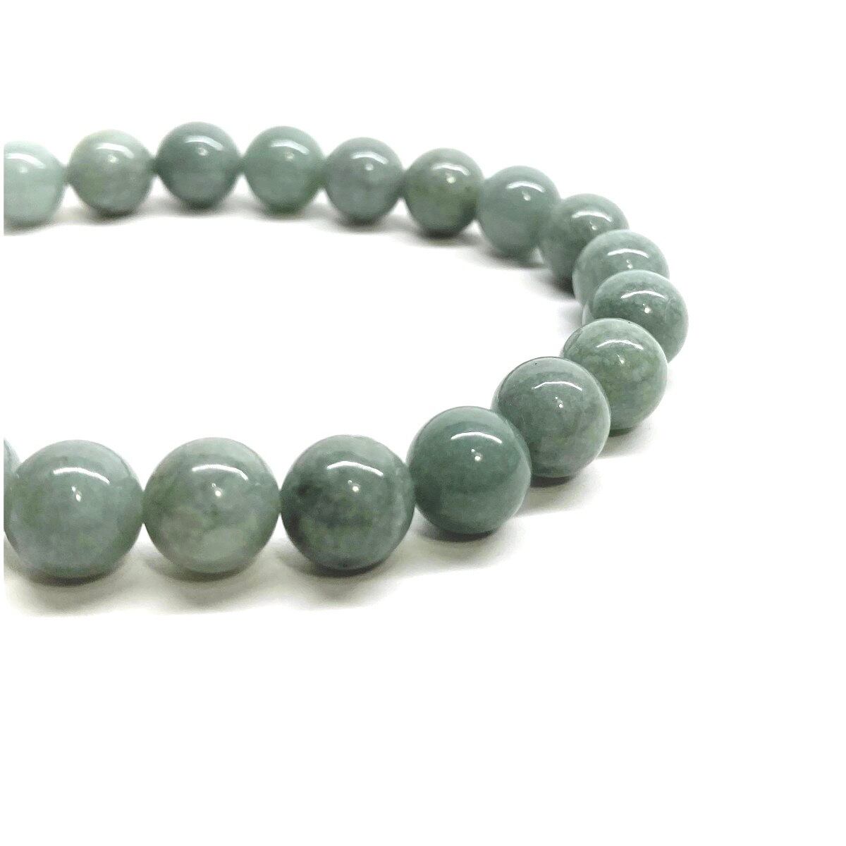 こちらは、ビルマ翡翠の8mm玉を使用したパワーストーンブレスレットです。シンプルなデザインは、シーン問わずどんなコーディネートとも合わせ易いブレスレットです。内周 約17cmです。気になる方はお早めにどうぞ。