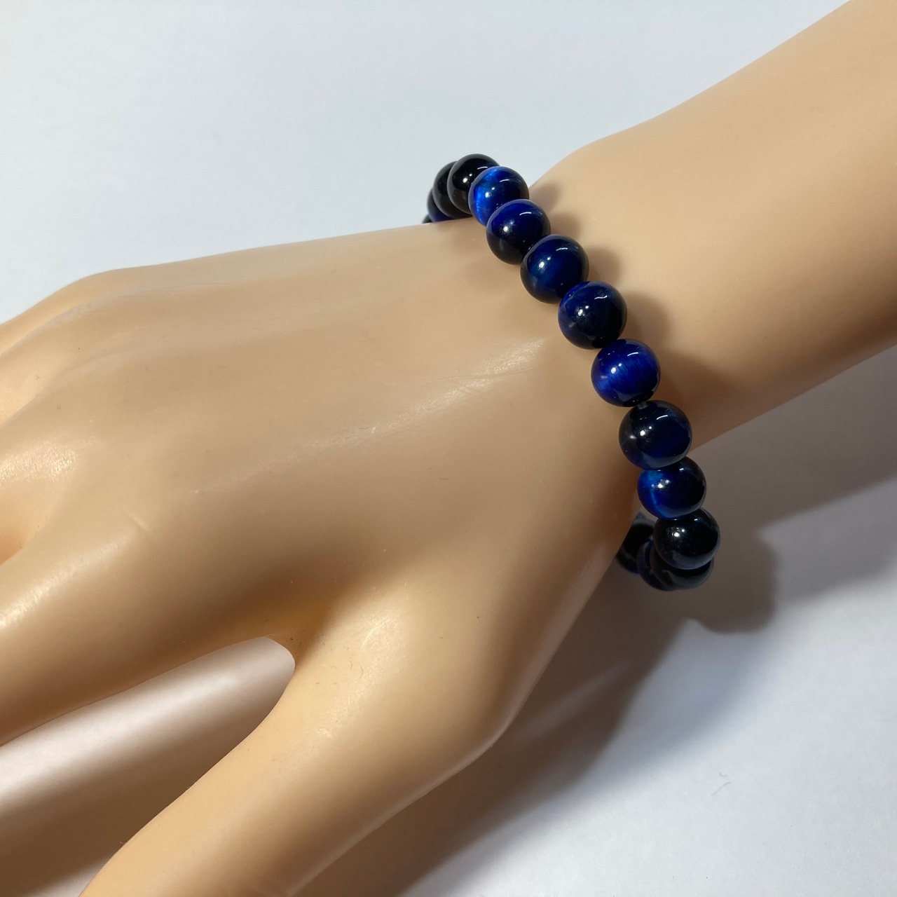 こちらは、ブルータイガーアイ の8mm玉を使用したパワーストーンブレスレットです。シンプルなデザインは、シーン問わずどんなコーディネートとも合わせ易いブレスレットです。内周 約17cmです。気になる方はお早めにどうぞ。