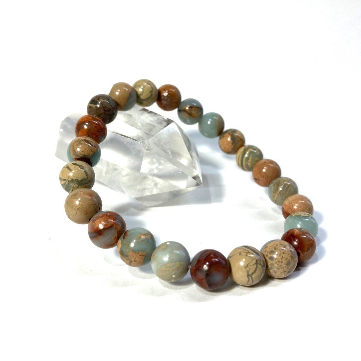 過去の辛いトラウマや記憶を癒やし中枢神経系のバランスを取り 、 不安や焦りを手放す手助けをしてくれるヒーリング ストーンです。近年知られるようになった石で、 淡いグリーンにベージュ 、ブラウンカラーの織りなす芸術的な美しさが特徴の天然石です 。