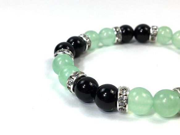 ジェイド(ライトグリーン)×オニキス パワーストーン ブレスレット 8mm S