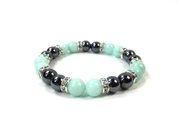 こちらは、8mm玉のジェイド(グリーン)とヘマタイトを使用したパワーストーンブレスレットです。間にはロンデルを挟み高級感ある大人っぽいデザインに仕上がっています。サイズは内周約15cmです。気になる方は是非この機会にどうぞ。