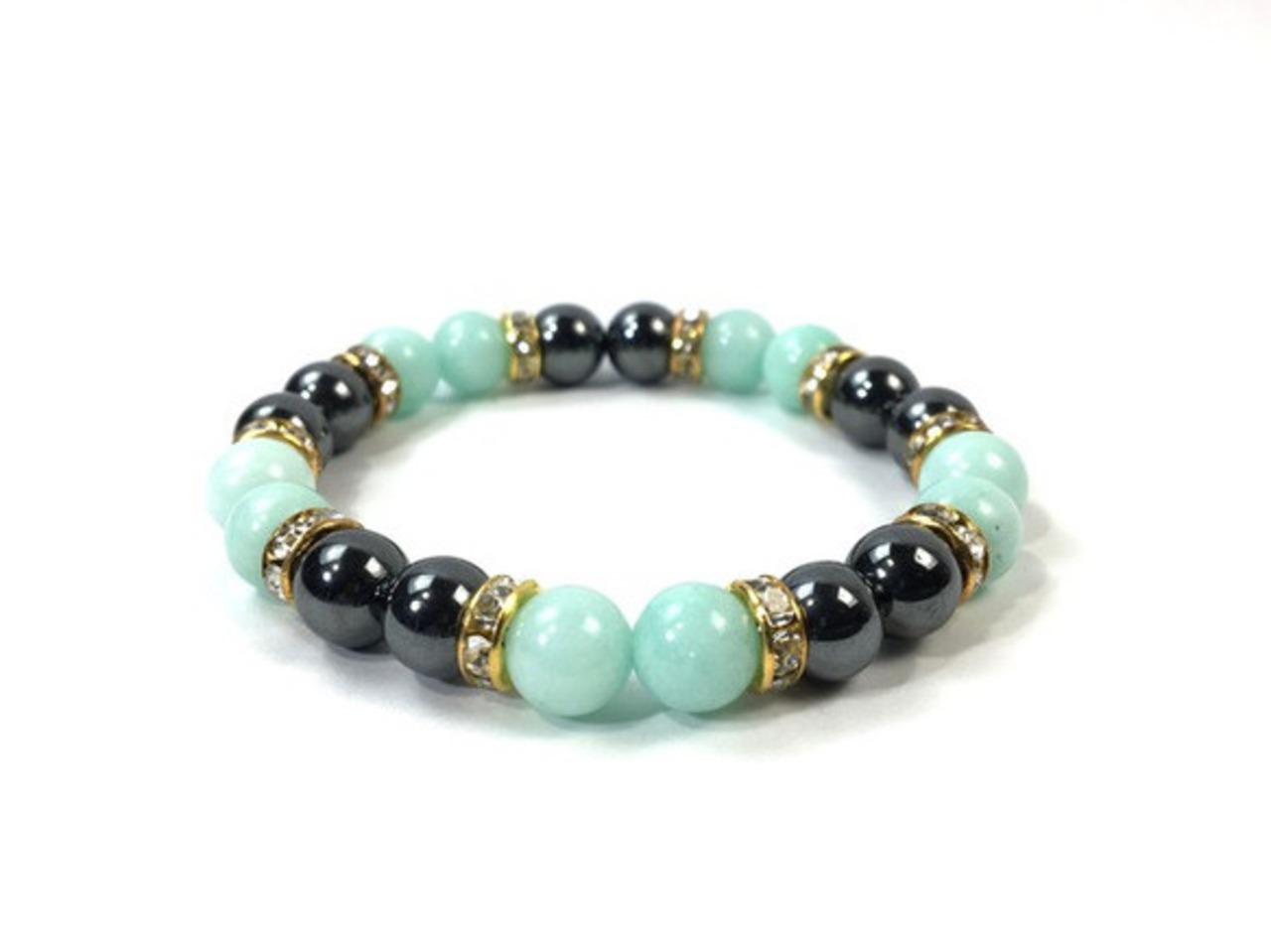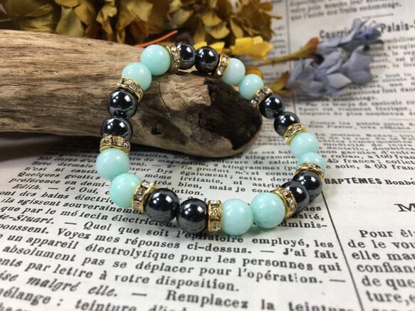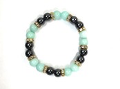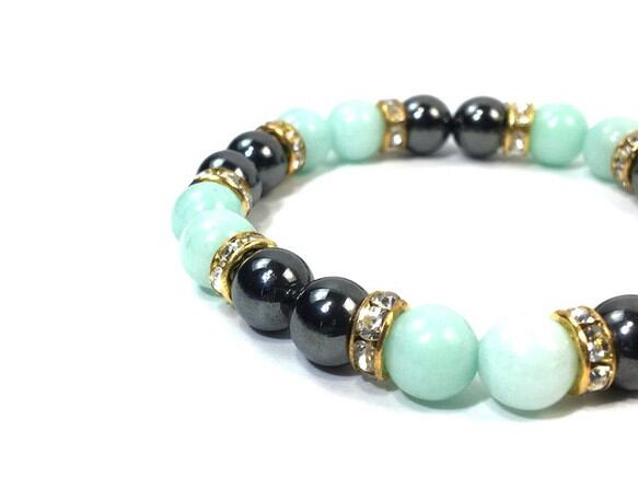 こちらは、8mm玉のジェイド(グリーン)とヘマタイトを使用したパワーストーンブレスレットです。間にはロンデルを挟み高級感ある大人っぽいデザインに仕上がっています。サイズは内周約15cmです。気になる方は是非この機会にどうぞ。