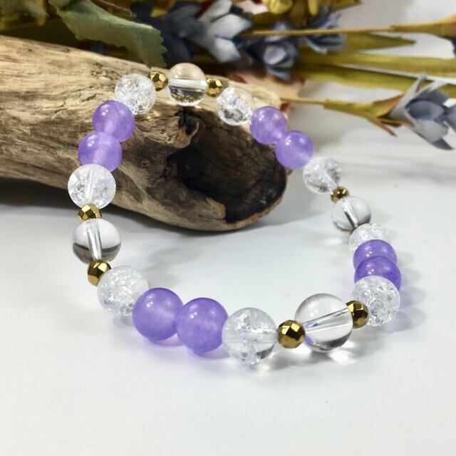 水晶×クラック水晶×ジェイド(Lパープル) パワーストーン ブレスレット 8mm