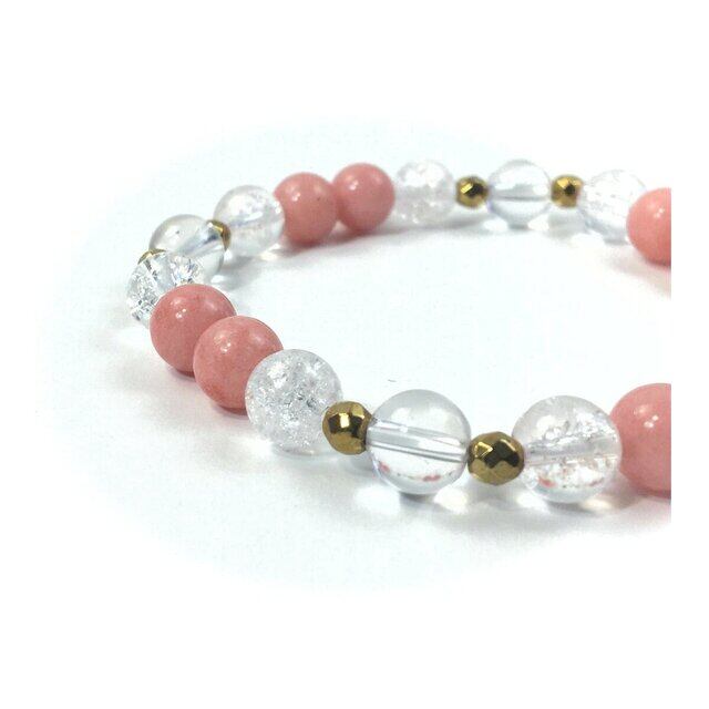 水晶×クラック水晶×ジェイド(ピンク) パワーストーン ブレスレット 8mm