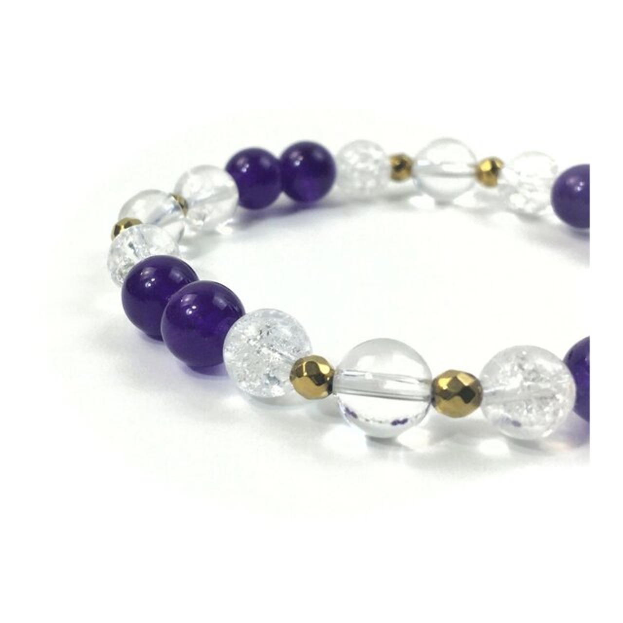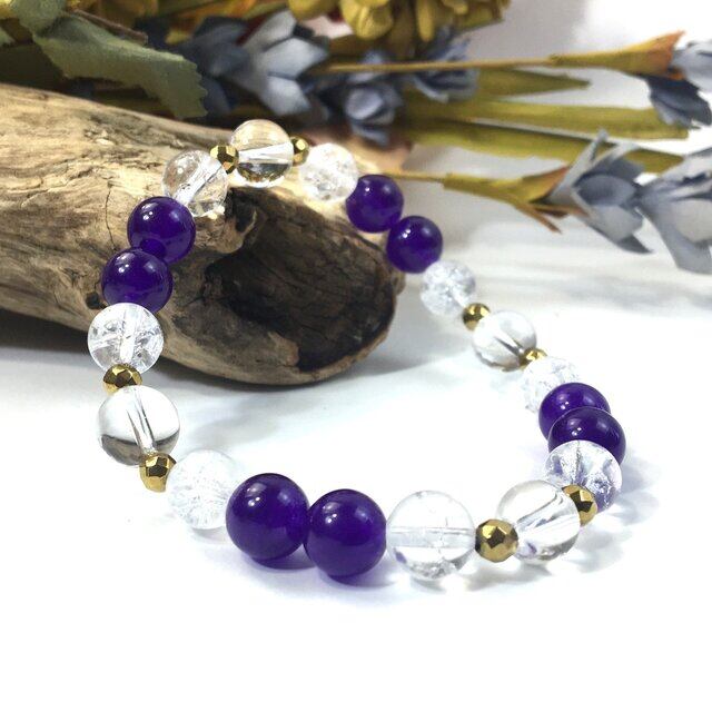 水晶×クラック水晶×ジェイド(パープル) パワーストーン ブレスレット 8mm