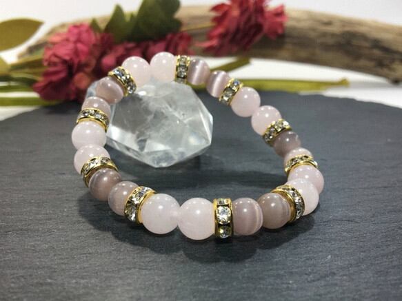 ローズクォーツ(8mm)・キャッツアイ(8mm)