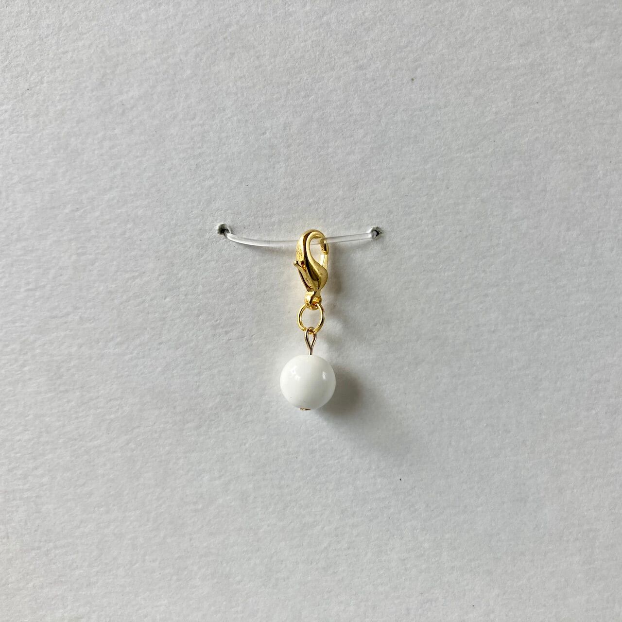 こちらは、8mm玉のホワイトオニキスを使用した一粒ストラップです。携帯電話にそのまま付けたり、ストラップから取り外しできるデザインに制作しておりますので、ストラップから外してお財布やポーチに付けたり、マスクチャームとも使えるデザインに仕上げています。気になる方は是非この機会にどうぞ。