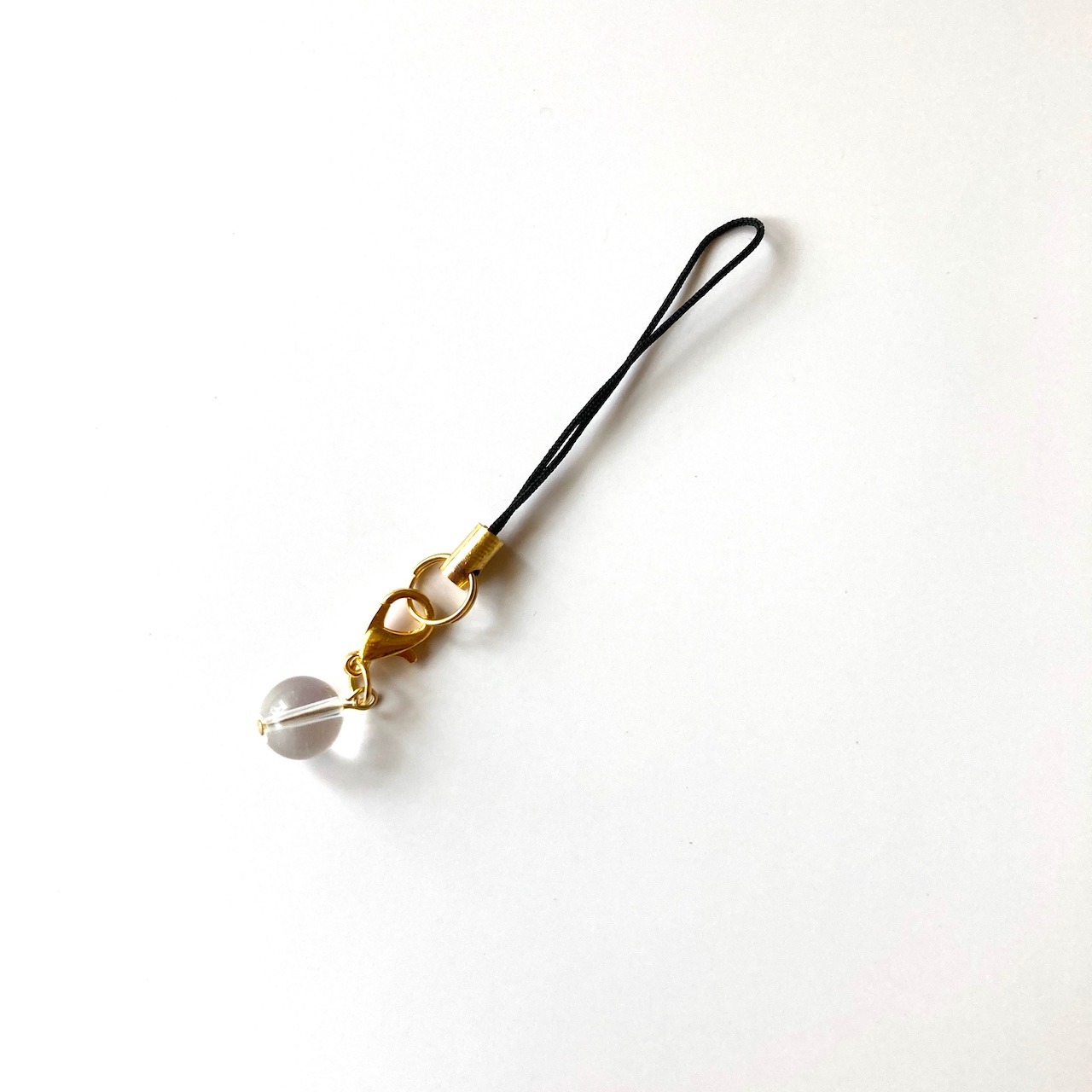 こちらは、8mm玉の水晶を使用した一粒ストラップです。携帯電話にそのまま付けたり、ストラップから取り外しできるデザインに制作しておりますので、ストラップから外してお財布やポーチに付けたり、マスクチャームとも使えるデザインに仕上げています。気になる方は是非この機会にどうぞ。