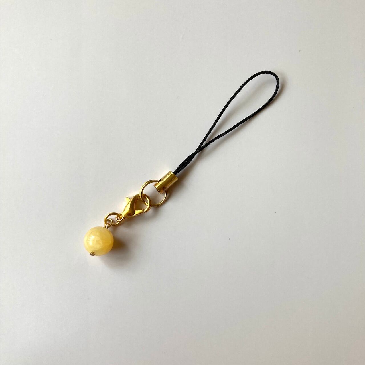 こちらは、8mm玉のアラゴナイトを使用した一粒ストラップです。携帯電話にそのまま付けたり、ストラップから取り外しできるデザインに制作しておりますので、ストラップから外してお財布やポーチに付けたり、マスクチャームとも使えるデザインに仕上げています。気になる方は是非この機会にどうぞ。