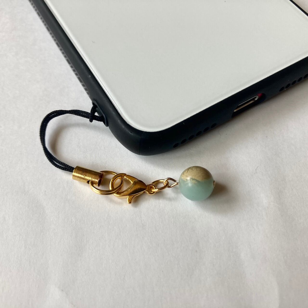 こちらは、8mm玉のインプレッションストーンを使用した一粒ストラップです。携帯電話にそのまま付けたり、ストラップから取り外しできるデザインに制作しておりますので、ストラップから外してお財布やポーチに付けたり、マスクチャームとも使えるデザインに仕上げています。気になる方は是非この機会にどうぞ。