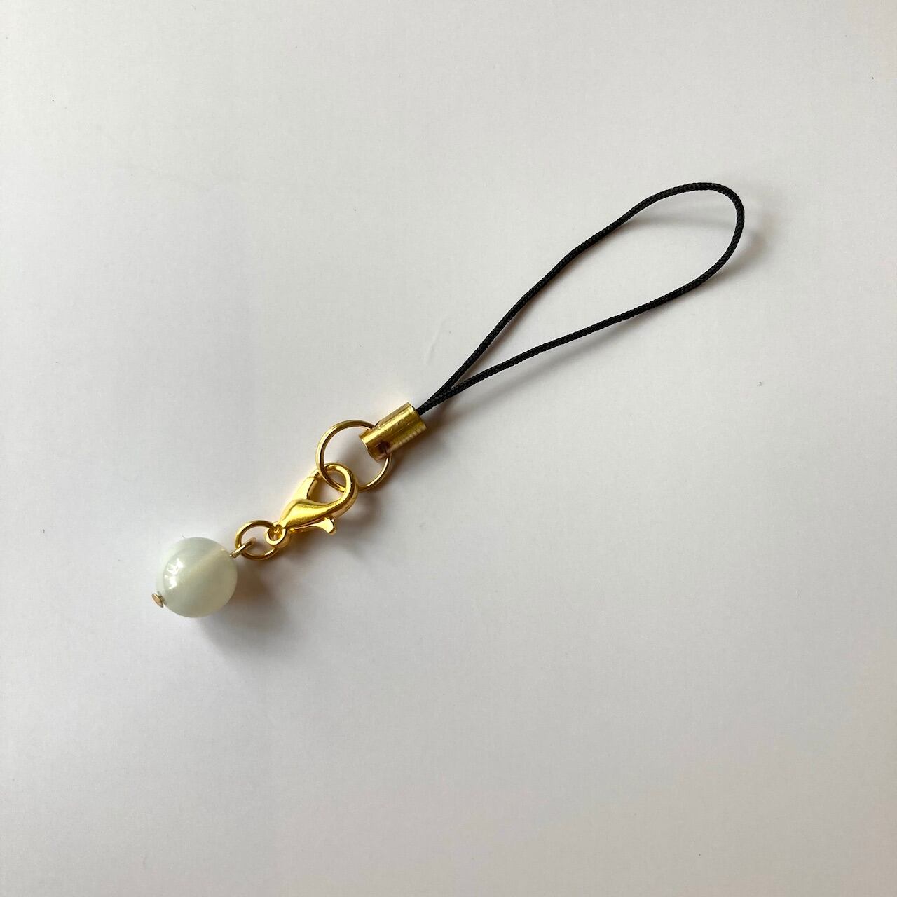 こちらは、8mm玉のムーンストーンを使用した一粒ストラップです。携帯電話にそのまま付けたり、ストラップから取り外しできるデザインに制作しておりますので、ストラップから外してお財布やポーチに付けたり、マスクチャームとも使えるデザインに仕上げています。気になる方は是非この機会にどうぞ。