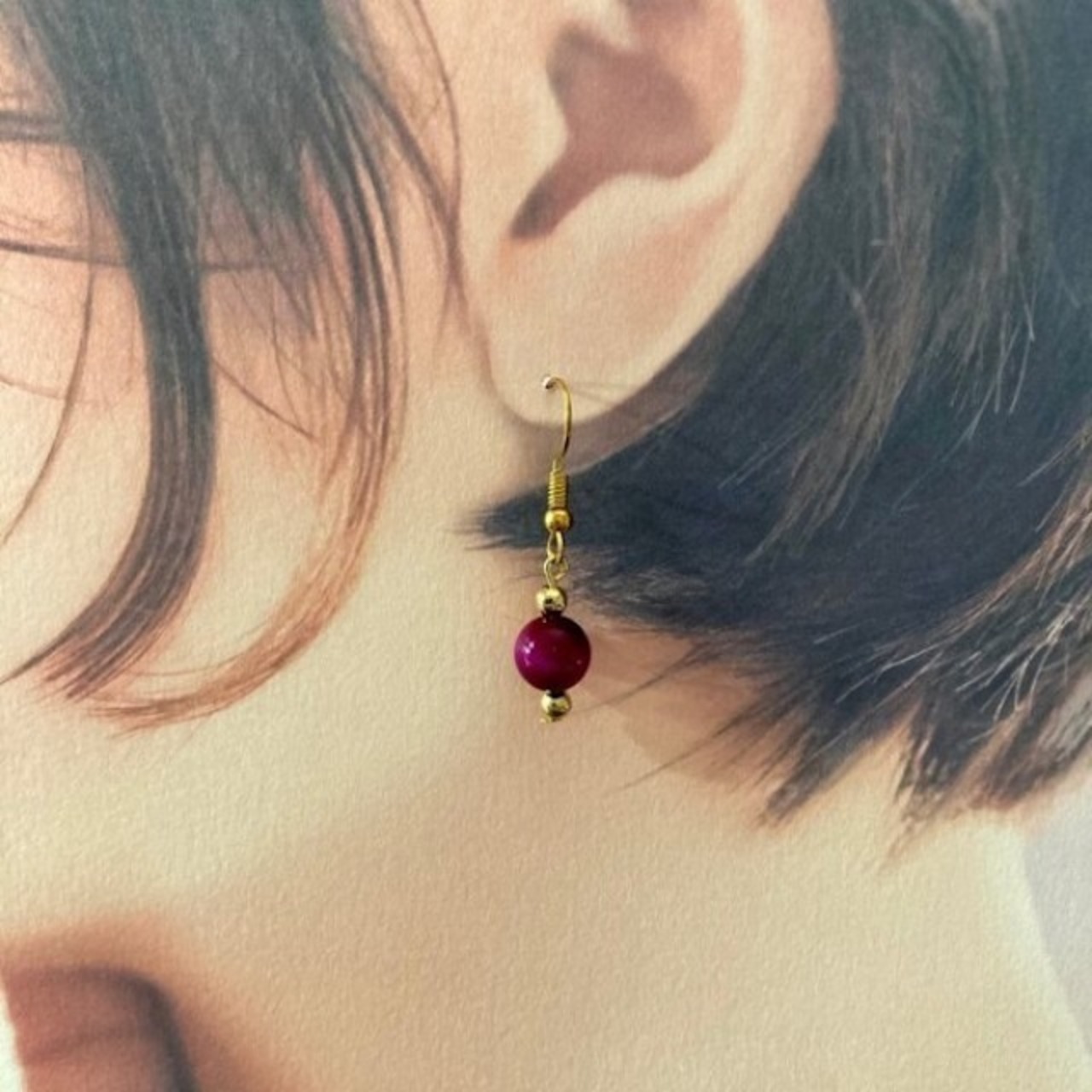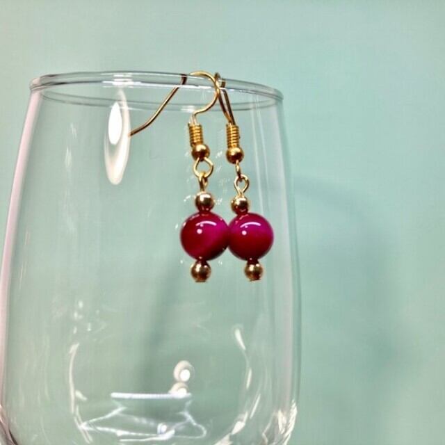 こちらは、8mm玉のピンクタイガーアイを使用した一粒フックピアスです。シンプルなデザインはシーン問わず、どんなコーディネートにも合わせ易く使い勝手がいいアイテムです。今回は一粒ピアスの要望が多かった為制作しました。気になる方は是非この機会にどうぞ。
