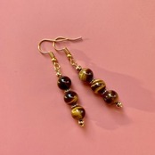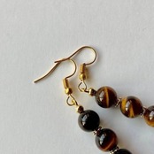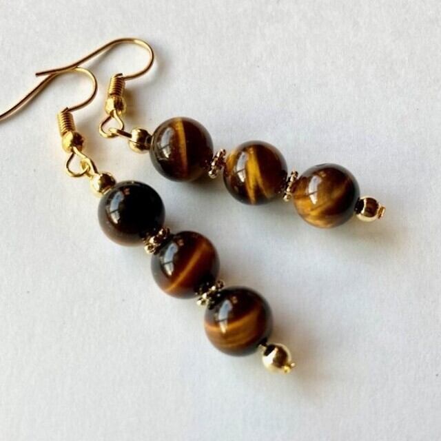 こちらは、8mm玉のタイガーアイを3個並べたフックピアスです。金運のフィーリング効果があると人気のタイガーアイを今回はシンプルなデザインで制作したピアスです。シンプルなデザインでコーディネートにも取り入れやすい、使い勝手がいいアイテムとなっております。気になる方は是非この機会にどうぞ。