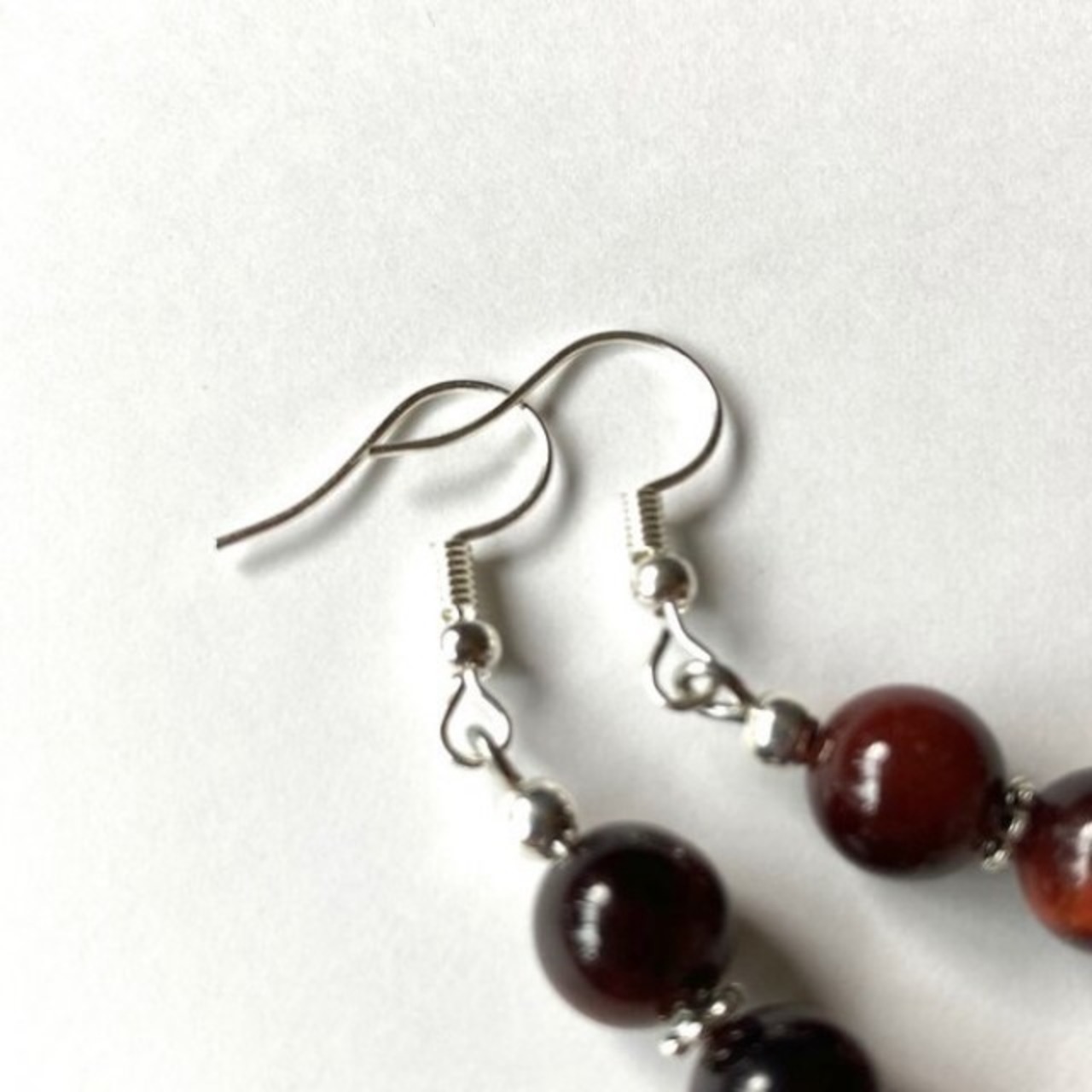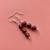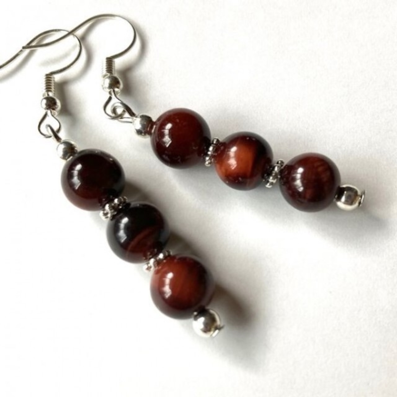 こちらは、8mm玉のレッドタイガーアイを3個並べたフックピアスです。金運のフィーリング効果があると人気のタイガーアイを今回はシンプルなデザインで制作したピアスです。シンプルなデザインでコーディネートにも取り入れやすい、使い勝手がいいアイテムとなっております。気になる方は是非この機会にどうぞ。