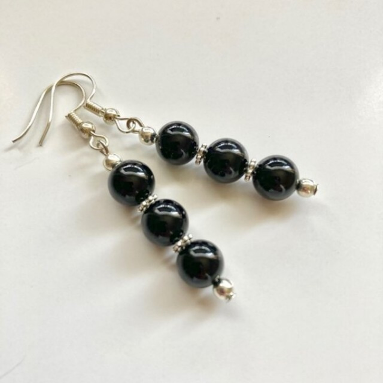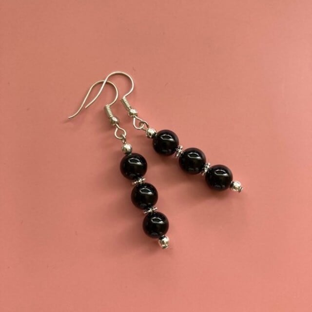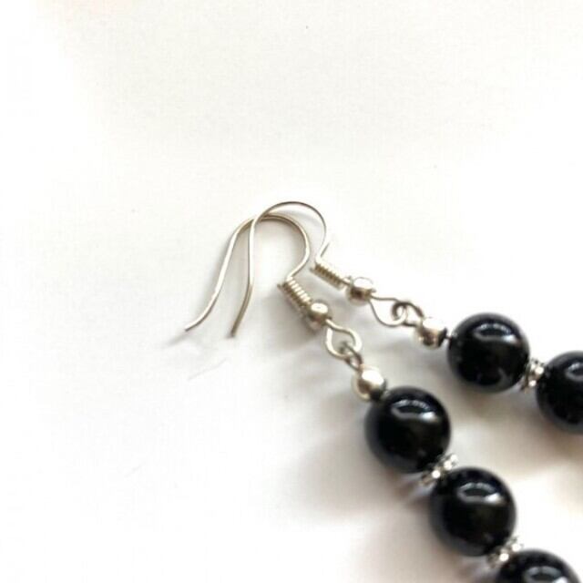 こちらは、8mm玉を使用したブラックオニキスのフックピアスです。どんなコーディネートとも合わせやすい様にシンプルなデザインで制作。シンプルなデザインは飽きがこないのでシーズン問わず使える事間違い無しのアイテムです。上品な印象で耳元を華やかに飾ってくれるアイテムですので気になる方は是非この機会にどうぞ。