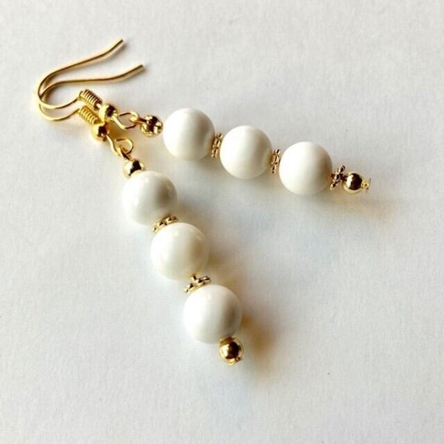 こちらは、8mm玉を使用したホワイトオニキスのフックピアスです。どんなコーディネートとも合わせやすい様にシンプルなデザインで制作。シンプルなデザインは飽きがこないのでシーズン問わず使える事間違い無しのアイテムです。上品な印象で耳元を華やかに飾ってくれるアイテムですので気になる方は是非この機会にどうぞ。