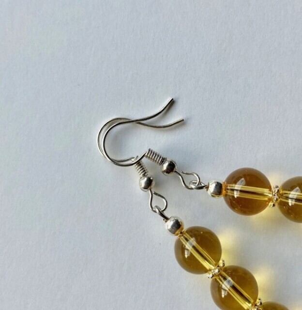 こちらは、8mm玉を使用したシトリンのフックピアスです。どんなコーディネートとも合わせやすい様にシンプルなデザインで制作。シンプルなデザインは飽きがこないのでシーズン問わず使える事間違い無しのアイテムです。上品な印象で耳元を華やかに飾ってくれるアイテムですので気になる方は是非この機会にどうぞ。