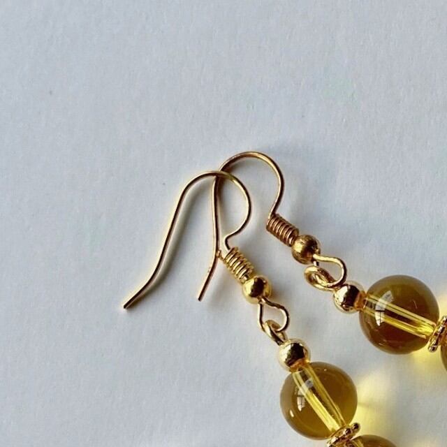 こちらは、8mm玉を使用したシトリンのフックピアスです。どんなコーディネートとも合わせやすい様にシンプルなデザインで制作。シンプルなデザインは飽きがこないのでシーズン問わず使える事間違い無しのアイテムです。上品な印象で耳元を華やかに飾ってくれるアイテムですので気になる方は是非この機会にどうぞ。