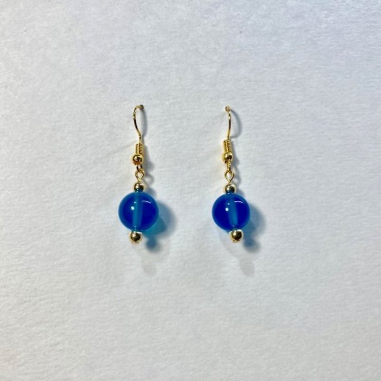 こちらは、10mm玉の青瑪瑙を使用した一粒フックピアスです。シンプルなデザインはシーン問わず、どんなコーディネートにも合わせ易く使い勝手がいいアイテムです。今回は一粒ピアスの要望が多かった為制作しました。気になる方は是非この機会にどうぞ。