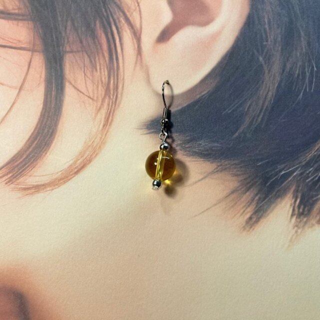 シトリン 一粒フックピアス 10mm SIL イヤリング 樹脂ピアス 天然石