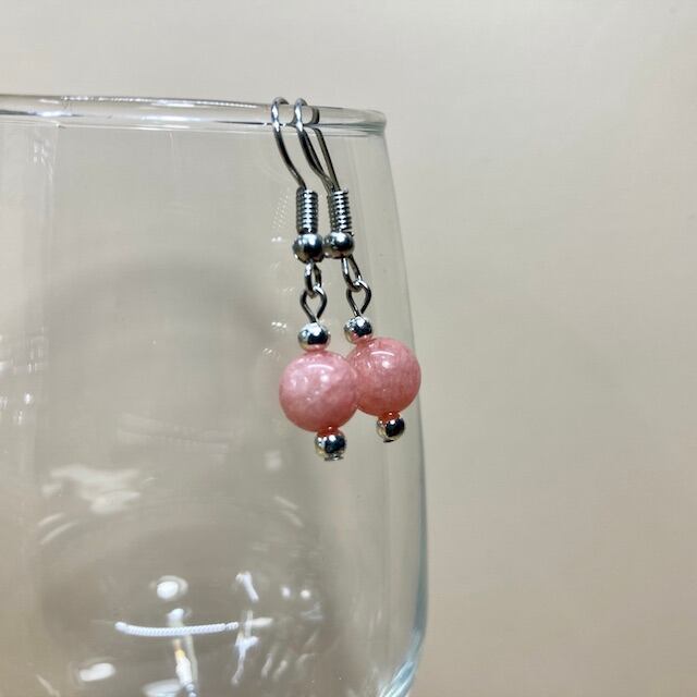 ジェイドピアス(ピンク) 一粒フックピアス  8mm S イヤリング