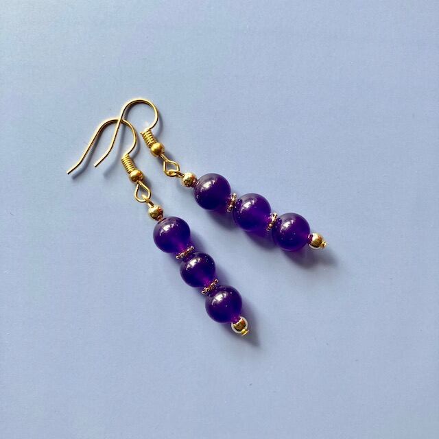 こちらは、8mm玉のジェイドを3個並べたフックピアスです。シンプルなデザインですのでコーディネートにも合わせやすいデザインで、使い勝手がいいアイテムとなっております。気になる方は是非この機会にどうぞ。