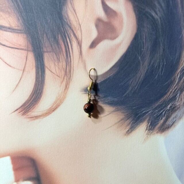 こちらは、8mm玉のレッドタイガーアイを使用した一粒フックピアスです。シンプルなデザインはシーン問わず、どんなコーディネートにも合わせ易く使い勝手がいいアイテムです。今回は一粒ピアスの要望が多かった為制作しました。気になる方は是非この機会にどうぞ。