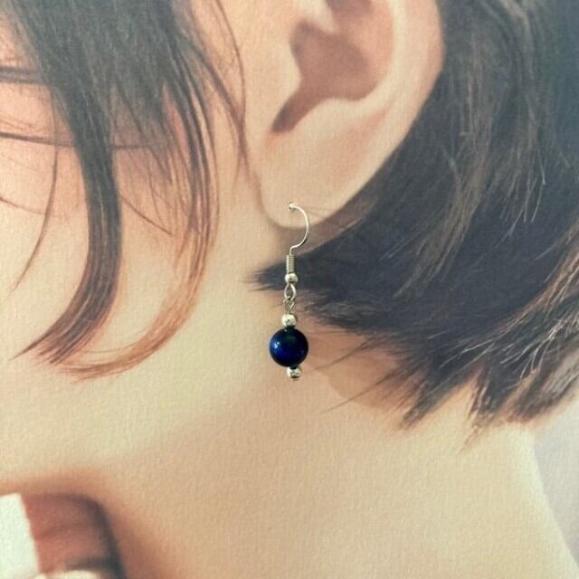 こちらは、8mm玉のブルータイガーアイを使用した一粒フックピアスです。シンプルなデザインはシーン問わず、どんなコーディネートにも合わせ易く使い勝手がいいアイテムです。今回は一粒ピアスの要望が多かった為制作しました。気になる方は是非この機会にどうぞ。