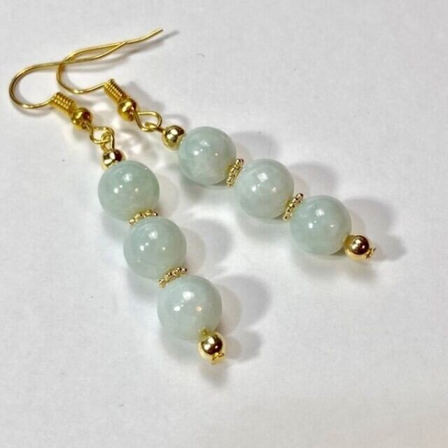 ビルマ翡翠 フックピアス 8mm GLD イヤリング 樹脂ピアス