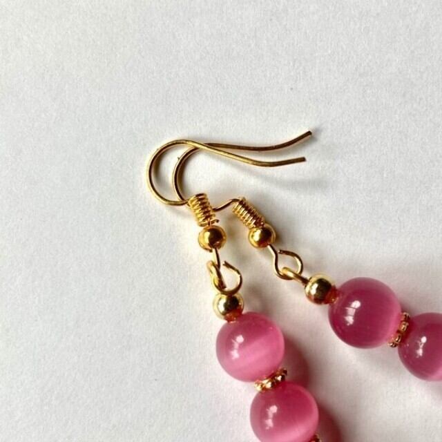 こちらは、8mm玉のキャッツアイを3個並べたフックピアスです。(名称的にはレッドキャッツアイとなっておりますが、濃ゆいオレンジ色味です)当ショップの中でも人気のあるキャッツアイは、女性の可愛らしさを引き立ててくれるピアスになっております。シンプルなデザインですのでコーディネートにも合わせやすいデザインで、使い勝手がいいアイテムとなっております。別売りのキャッツアイブレスレットと合わせても良さそうですね。気になる方は是非この機会にどうぞ。