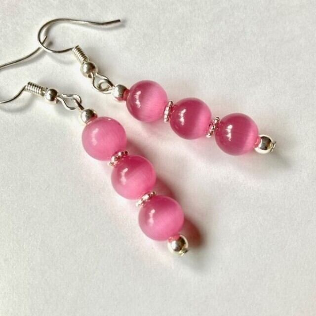 こちらは、8mm玉のキャッツアイを3個並べたフックピアスです。(名称的にはレッドキャッツアイとなっておりますが、濃ゆいオレンジ色味です)当ショップの中でも人気のあるキャッツアイは、女性の可愛らしさを引き立ててくれるピアスになっております。シンプルなデザインですのでコーディネートにも合わせやすいデザインで、使い勝手がいいアイテムとなっております。別売りのキャッツアイブレスレットと合わせても良さそうですね。気になる方は是非この機会にどうぞ。
