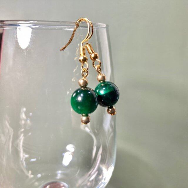 こちらは、10mm玉のグリーンタイガーアイを使用した一粒フックピアスです。シンプルなデザインはシーン問わず、どんなコーディネートにも合わせ易く使い勝手がいいアイテムです。今回は一粒ピアスの要望が多かった為制作しました。気になる方は是非この機会にどうぞ。